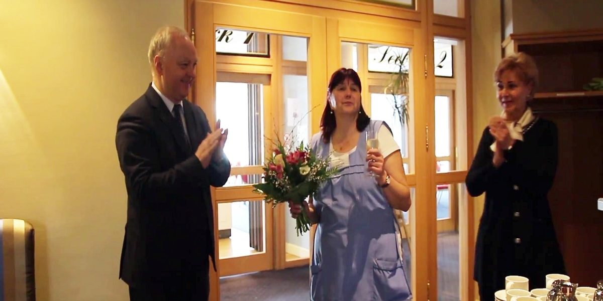 Wir gratulieren Frau Arndt, unserer langjährigen Mitarbeiterin im Housekeeping, ganz herzlich zum Geburtstag und wünschen Ihr nur das Beste für Ihre Zukunft. Vor allem aber Gesundheit und Freude im Leben. Auch der Geschäftsführer vom INSELHOTEL Potsdam, Burkhard Scholz, und Direktorin Silka Kokot haben es sich nicht nehmen lassen, Frau Arndt zu Ihrem Jubeltag zu gratulieren. Das Team vom INSELHOTEL Potsdam trällerte aus vollem Herzen ein Ständchen für die geschätzte Mitarbeiterin.