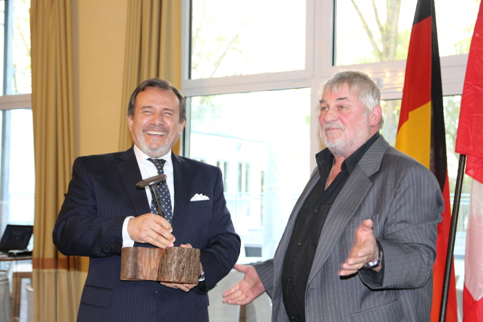 Auch der peruanische Botschafter Elmer Schialer Salcedo ergriff das Wort und war sehr angetan über das Interesse an seinem Land und dessen Speisen. Selbst Brandenburgs Minister für Inneres und Kommunales Karl-Heinz Schröter lobte den Blick über den Tellerrand und erzählte über die Anfänge der Kartoffel in Deutschland bzw. Preußen. Als einen Höhepunkt wurde die Übergabe eines Friedensnagels von Heinz Hoenig an den peruanischen Botschafter und seinem Land, wahrgenommen. Heinz Hoenig stellte den Gästen sein Herzensprojekt „Kinder schmieden Zukunft“ vor und ermöglichte einen Blick auf die Friedensnägel, welche mit internationalen und deutschen Schmieden geschmiedet und für einen guten Zweck verkauft werden. Sie möchten mehr darüber wissen? Kein Problem. Wir werden dieses tolle Projekt in den nächsten Tagen genauer vorstellen.