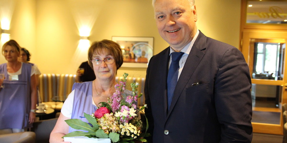 Als 1. Hausdame kennt und liebt Frau Mattausch die Arbeit mit den Gästen und freut sich jeden Tag auf die Herausforderungen. Mit Hilfe ihrer netten Kollegen erhofft sie sich noch viele weitere Jahre im INSELHOTEL Potsdam. Da können der Geschäftsführer Burkhard Scholz und die Direktorin Silka Kokot nur zustimmen, die ihre liebe Mitarbeiterin nicht missen wollen und ihr sehr dankbar sind, für 20 Jahre hervorragende Leistung, die kompetente und zuverlässige Zusammenarbeit sowie ihre herausragende Führungsrolle für das Housekeeping-Team.