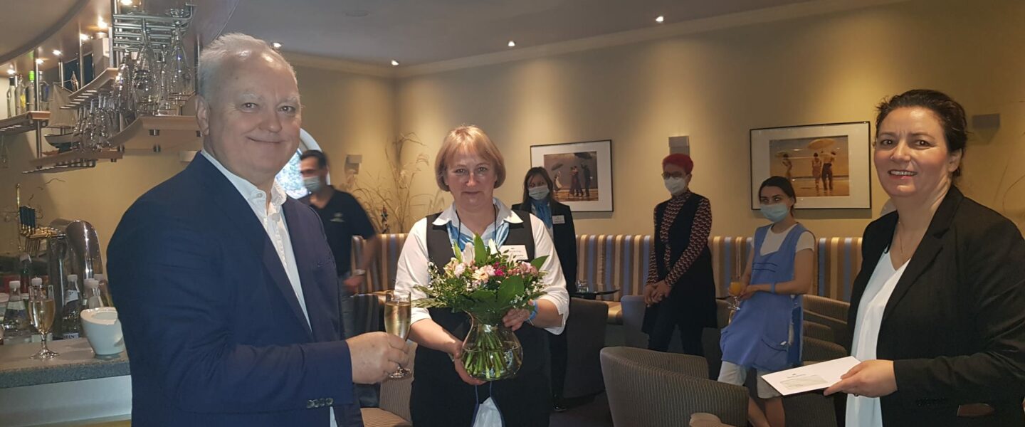 Zum 10-jährigen Betriebsjubiläum gratulieren wir unserer Kollegin Frau Schröder ganz herzlich und wünschen weiterhin viel Freude an der Rezeption.
