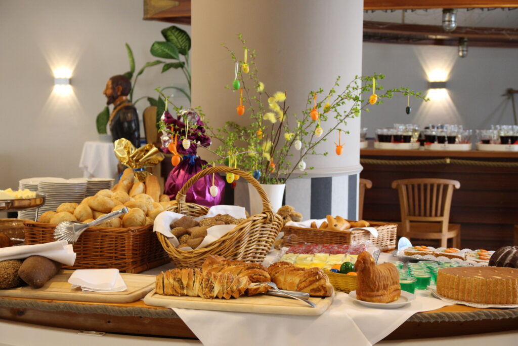 Beim Osterbrunch von 10:30 bis 13:30 Uhr genießen Sie eine Vielfalt an herzhaften, frischen und süßen Köstlichkeiten vom Buffet. Für unsere kleinen Gäste gibt es beim Brunch zusätzlich lustige Spiele wie Eierlauf und Topfschlagen. Zur Begrüßung servieren wir prickelndes Osterwasser – bevor Sie sich an den zahlreichen Spezialitäten erfreuen, von frischen Salaten über feine Fisch- und Fleischgerichte bis hin zu veganen Leckereien und verführerischen Desserts.